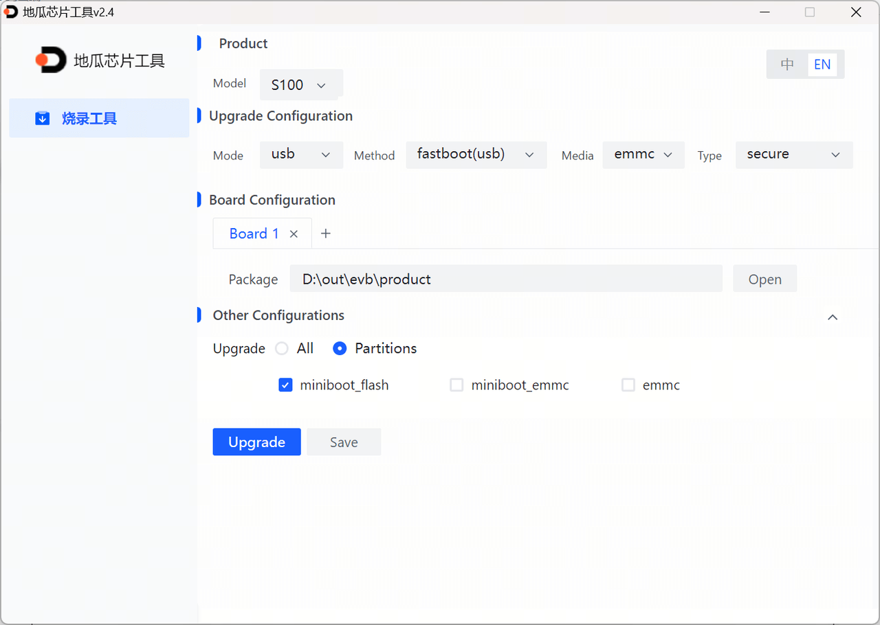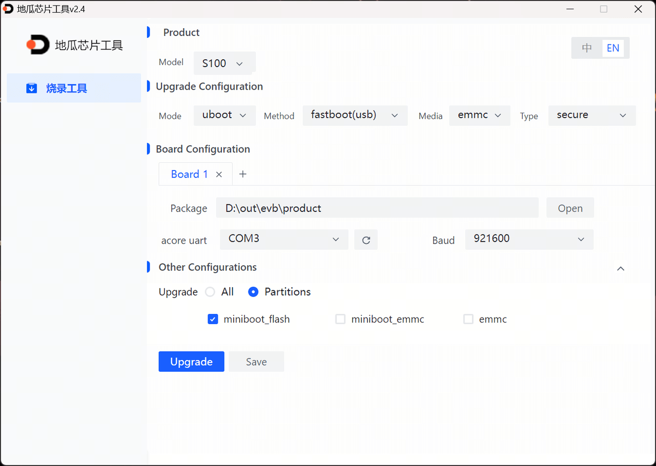 - If you cannot enter Uboot normally, select "USB" for download mode—no need to specify UART port or baud rate. Keep all other settings consistent with the Uboot scenario: