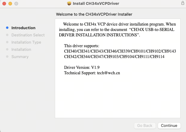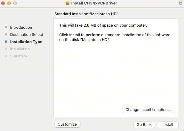 tty.usbserial*, move theCH34xVCPDriverAppto the Trash, empty the Trash, restart your computer, and reinstall the driver following the steps above.