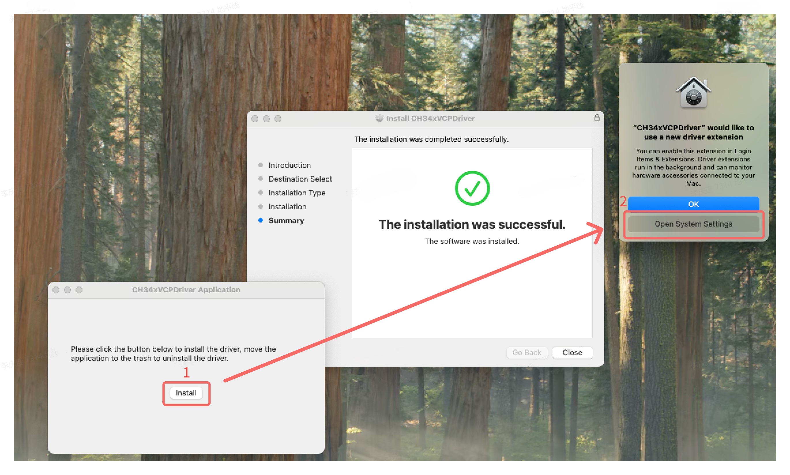 Taking MacOS version 15.0 (M3 chip) as an example: the default MacOS serial driver connects to the CH340N at 921600 baud rate but produces garbled output. You must install the latest CH340N driver as follows: