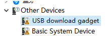 If the driver is not installed, Device Manager will show an unknown "USB download gadget" device, as shown below: