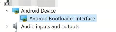 After successful driver installation, Device Manager will display an "Android Device," as shown below: