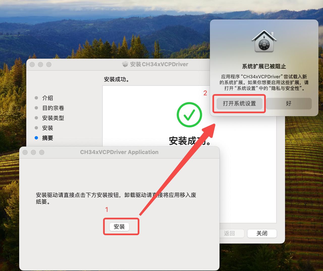 以 MacOs 版本 15.0(芯片 M3)为例,MACOS 系统默认串口驱动以 921600 波特率连接 CH340N 会出现乱码,需要安装最新的 CH340N 的驱动,操作如下: