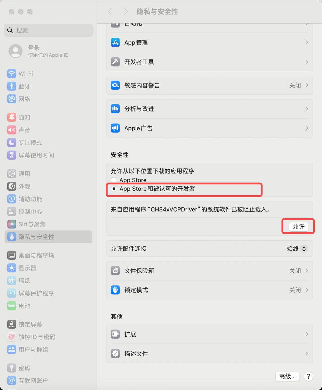 tty.usbserial*,需要把 CH34xVCPDriverApp 放到废纸篓里,清空废纸篓,重启电脑,根据上面的步骤重新安装。