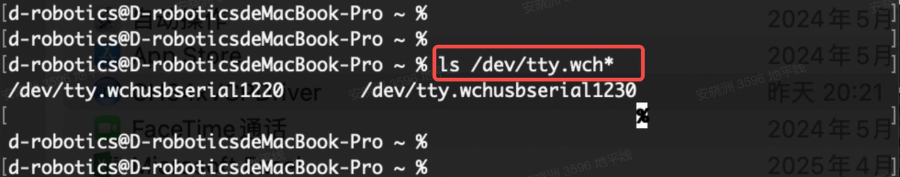 - 检查是否安装成功,识别到 tty.wch* 表示驱动安装成功