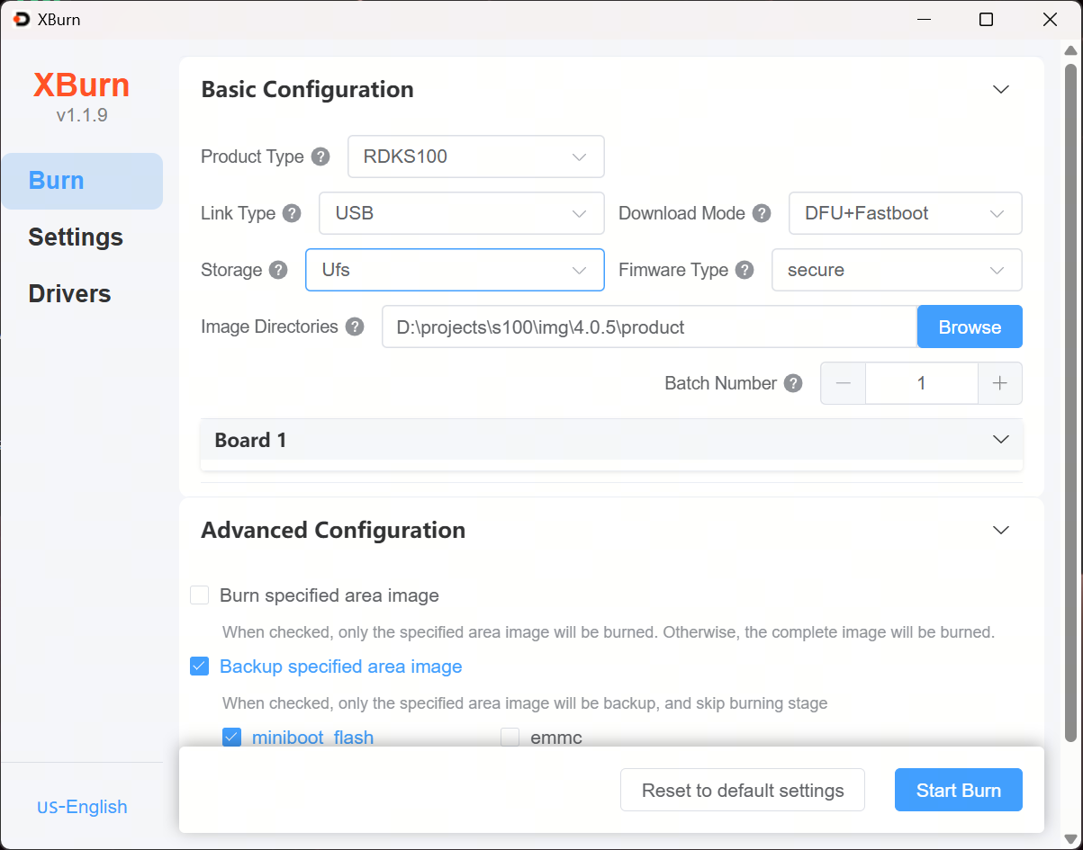 The RDK S100 development kit can use the PC-side tool Xburn to flash the Ubuntu system.