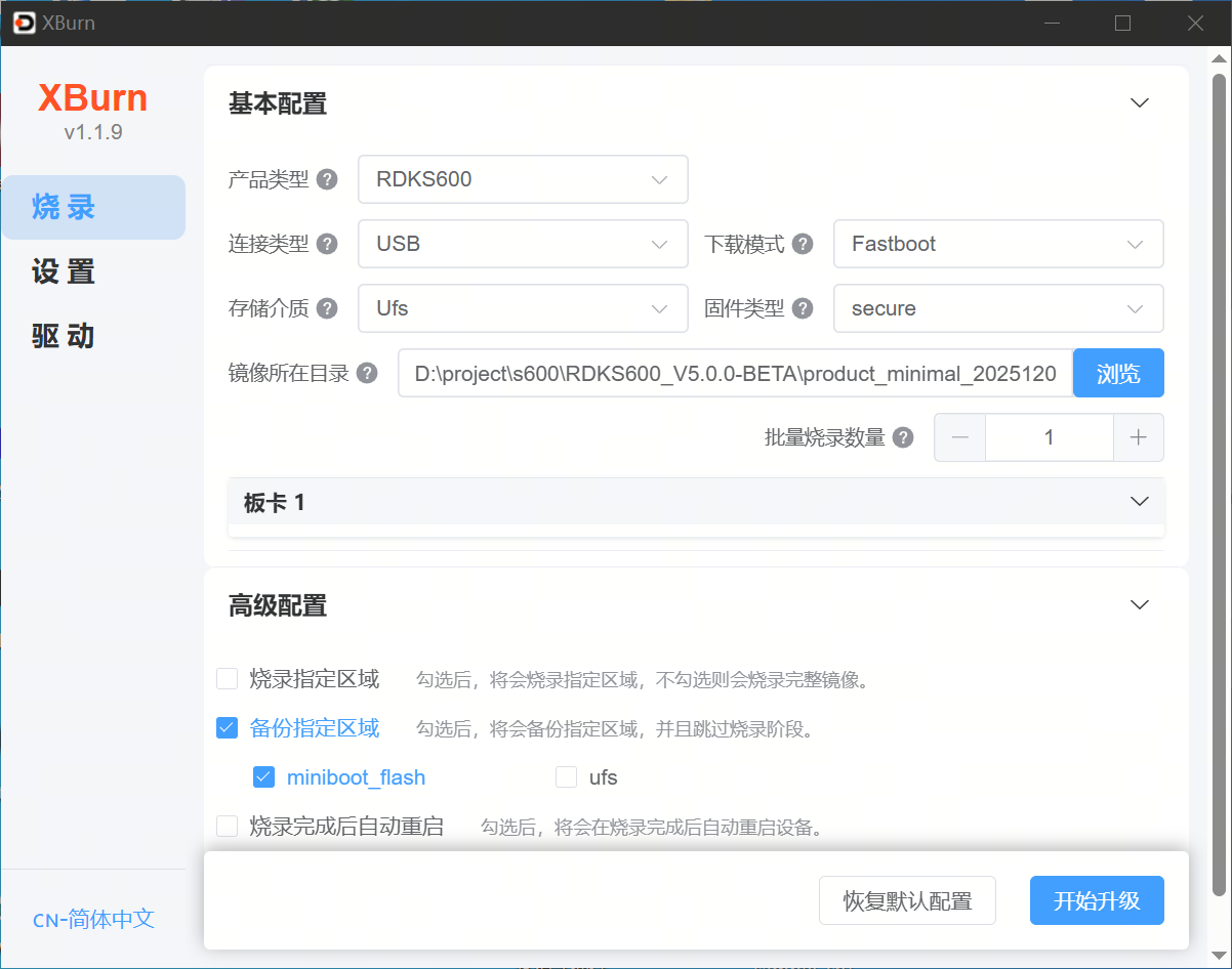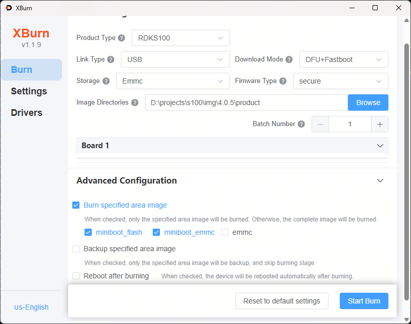 The RDK S100 supports flashing specific partitions via Xburn. The supported partitions are as follows: