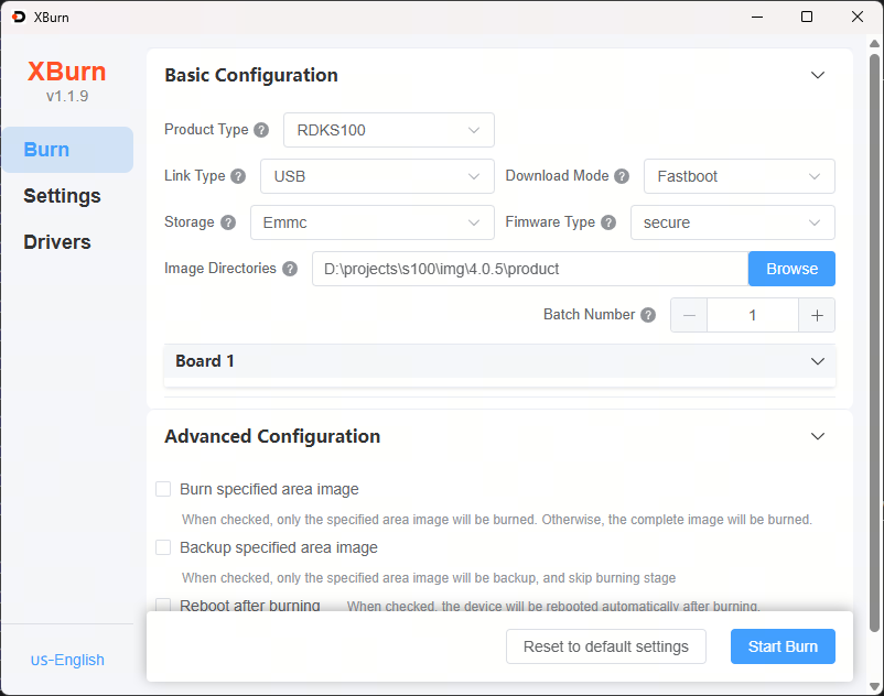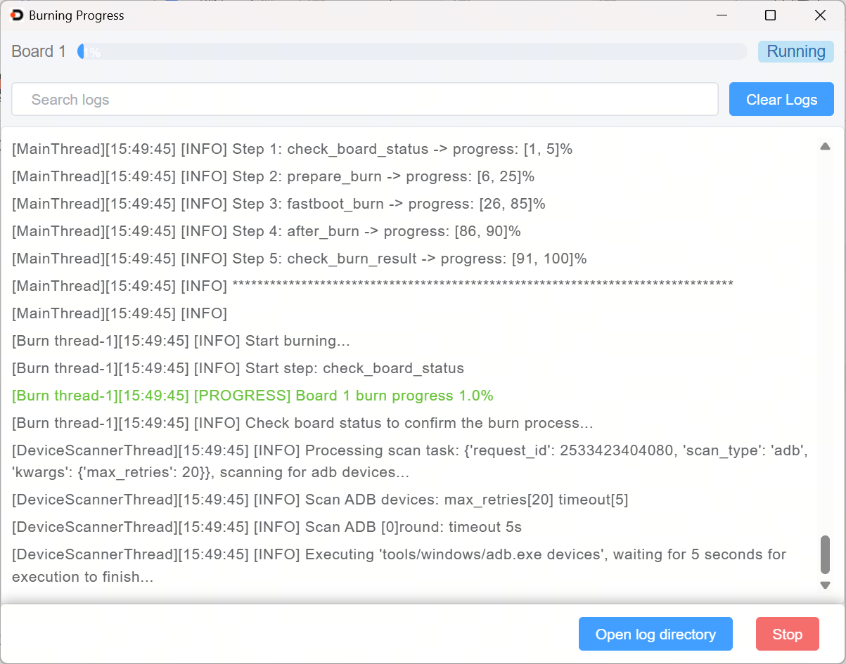 - Automatic entry into Fastboot: An ADB device is automatically generated after system startup. Xburn detects the ADB device and sends a command to the board to enter Fastboot.
